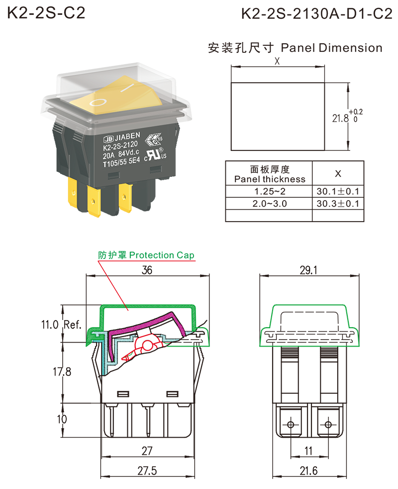 ◆K2-2S series are one standard type rocker switches, optional many kinds of types, optional with Protection Cap for dustproof and waterproof, or with Inner Protection Structure for dustproof and waterproof, specially for used in DC high rated power tools and gardening tools such as: Cordless Bench Grinders, Cordless Electric Lawnmowers, Cordless Electric High Pressure Washers, etc. Also for used in AC or DC Electric Welder, etc.