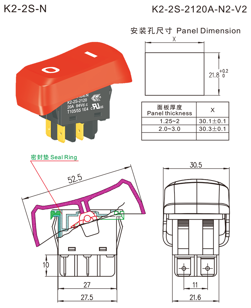 K2-2S series (Dustproof and Waterproof) High Rated Rocker Switches