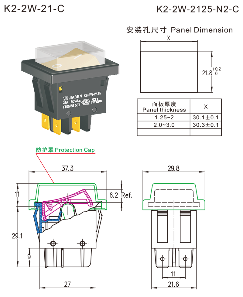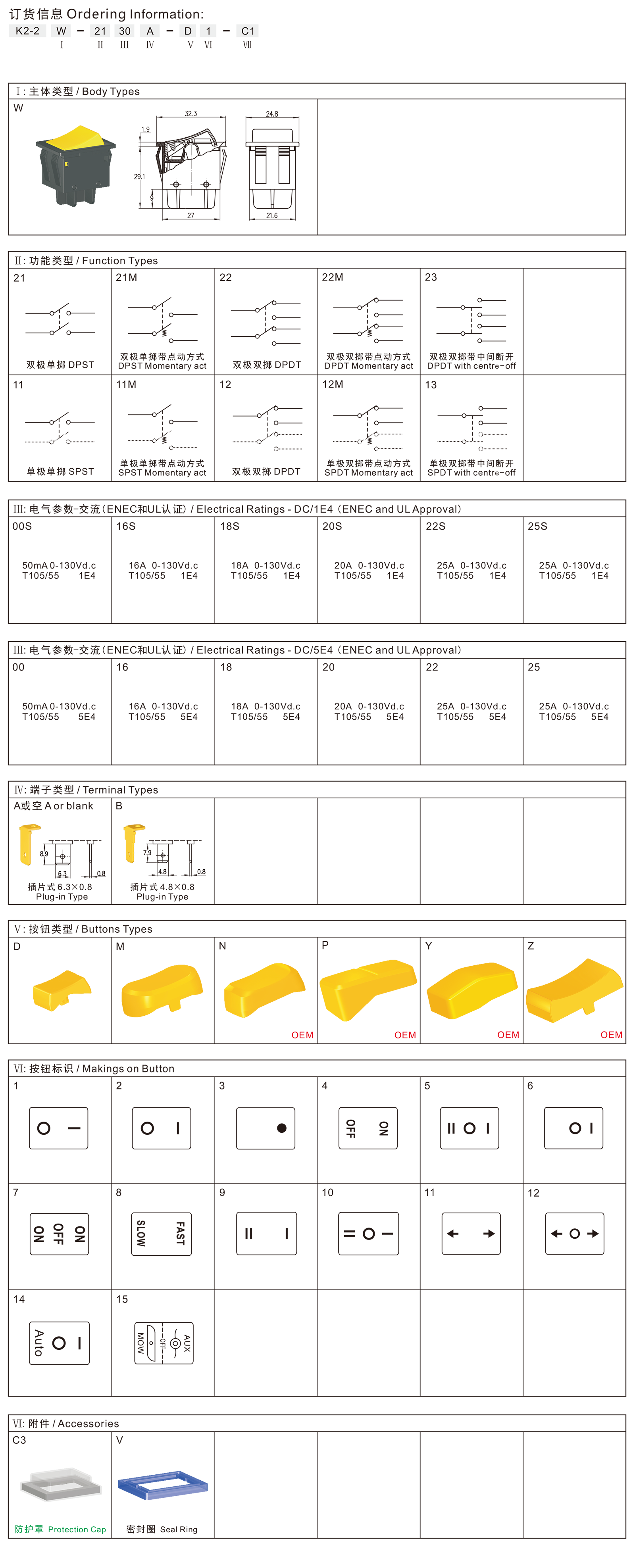 ◆K2-2W series are one standard type rocker switches, optional many kinds of types, specially inner structure for dustproof and waterproof without Protection Cap, specially for used in DC high rated power tools and gardening tools such as: Cordless Bench Grinders, Cordless Electric Lawnmowers, Cordless Electric High Pressure Washers, etc.