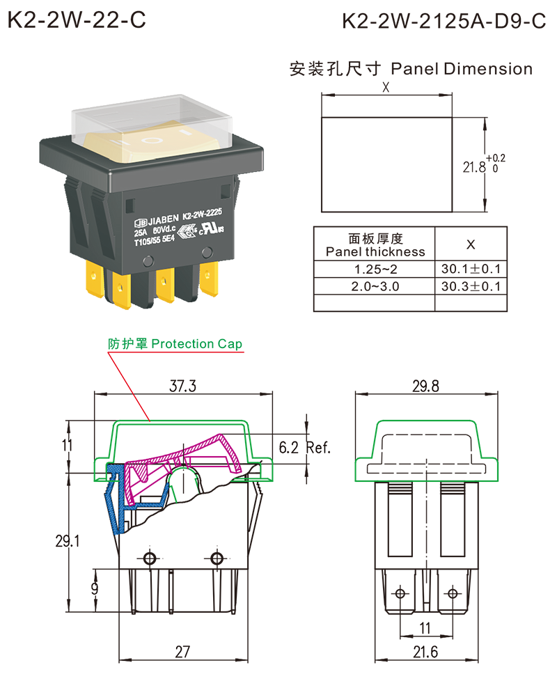 ◆K2-2W series are one standard type rocker switches, optional many kinds of types, specially inner structure for dustproof and waterproof without Protection Cap, specially for used in DC high rated power tools and gardening tools such as: Cordless Bench Grinders, Cordless Electric Lawnmowers, Cordless Electric High Pressure Washers, etc.