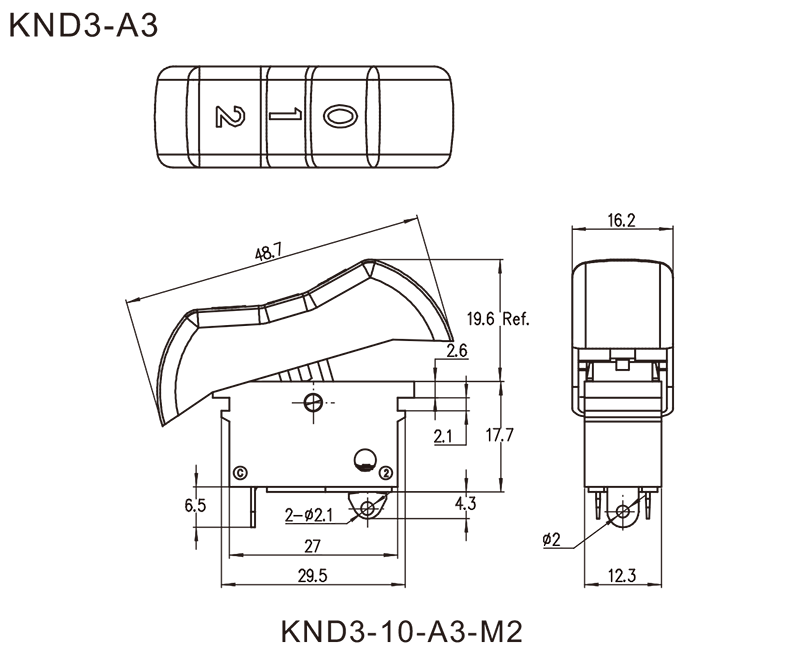 ◆KND3系列是一款通用型的蹺板開關(guān),也通稱船型開關(guān)、波形開關(guān)等,一般應(yīng)用于各類電吹風(fēng)、熱風(fēng)槍等。