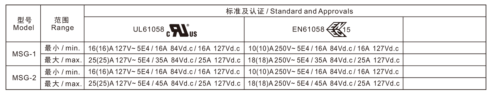 電氣參數和認證 Electric Rating and Certification