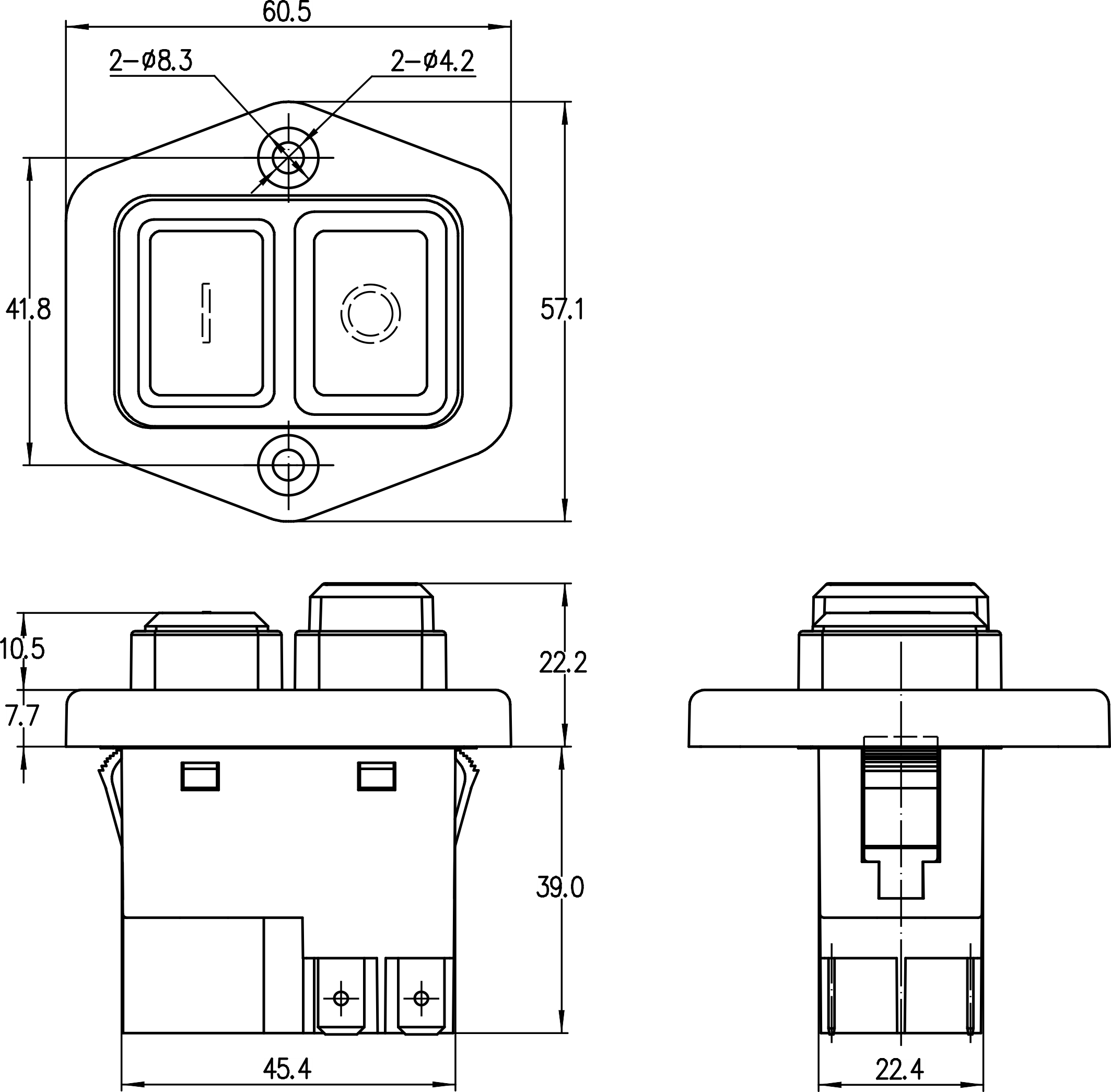 →插片端子 Plug-in terminals 6.3×0.8mm