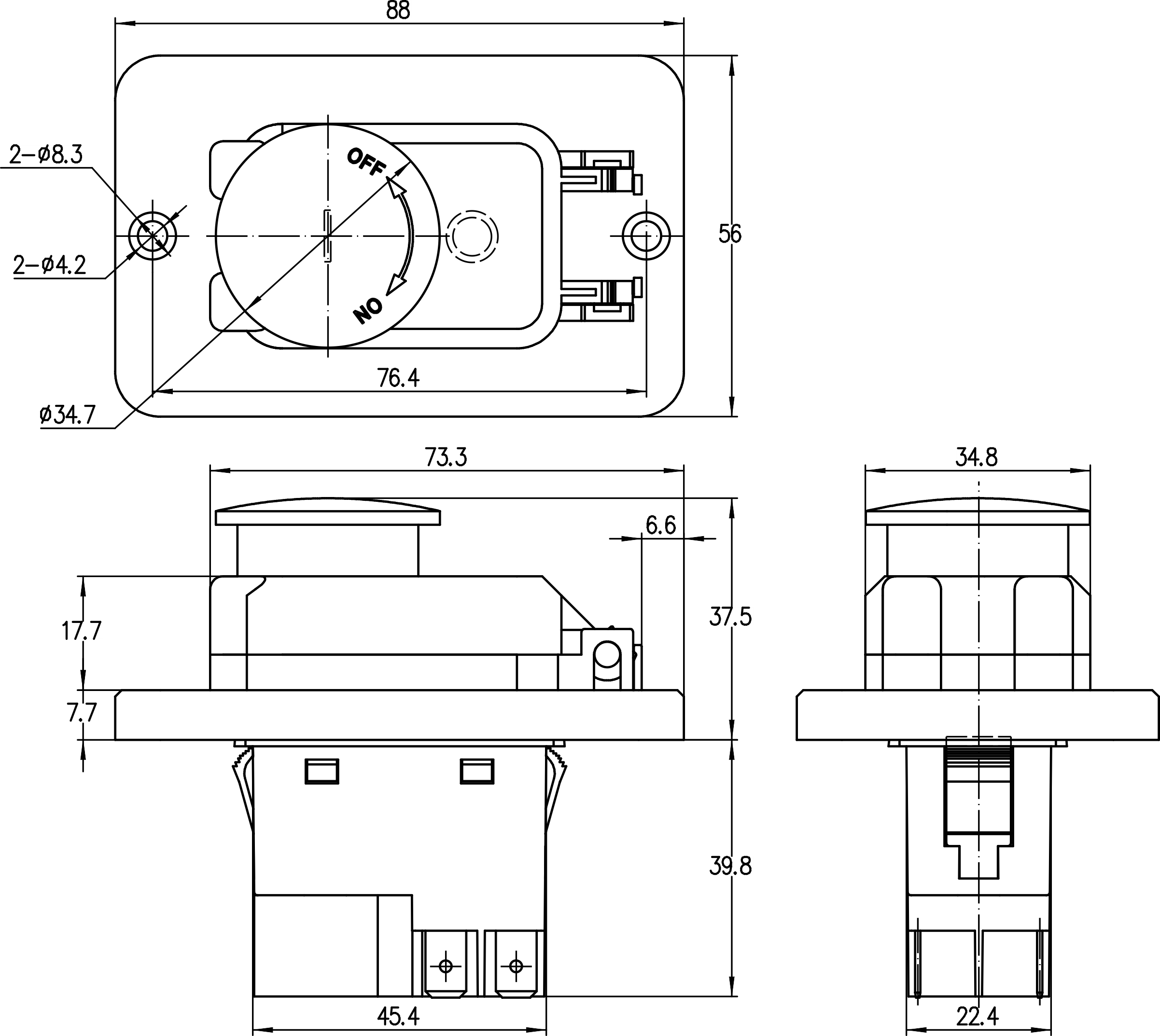 →插片端子 Plug-in terminals 2.8×0.8mm
