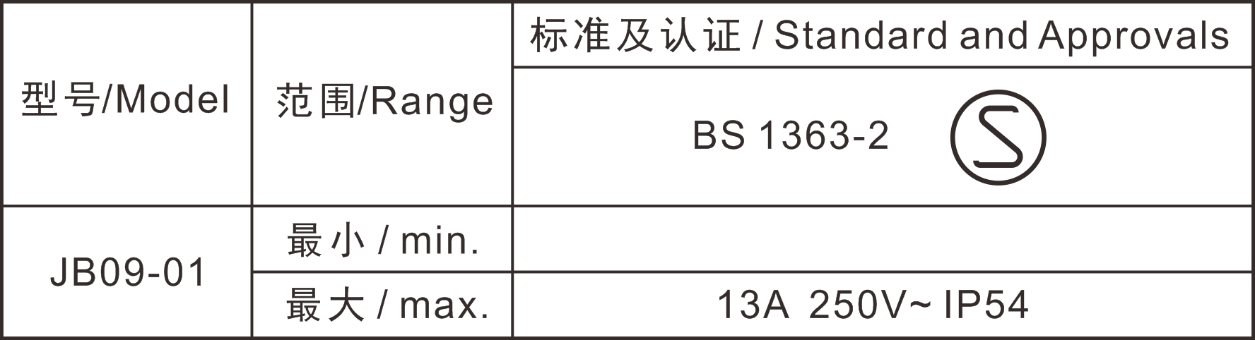 ◆JB09-01是一 款通用型的英式插座,集成防塵防水功能,應(yīng)用于干濕兩用吸塵器及各類臺(tái)式電動(dòng)工具等。
