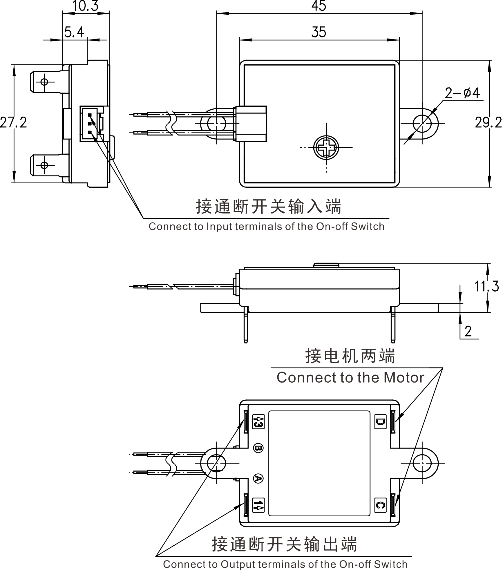 →插片端子 Plug-in terminals 4.8×0.8mm