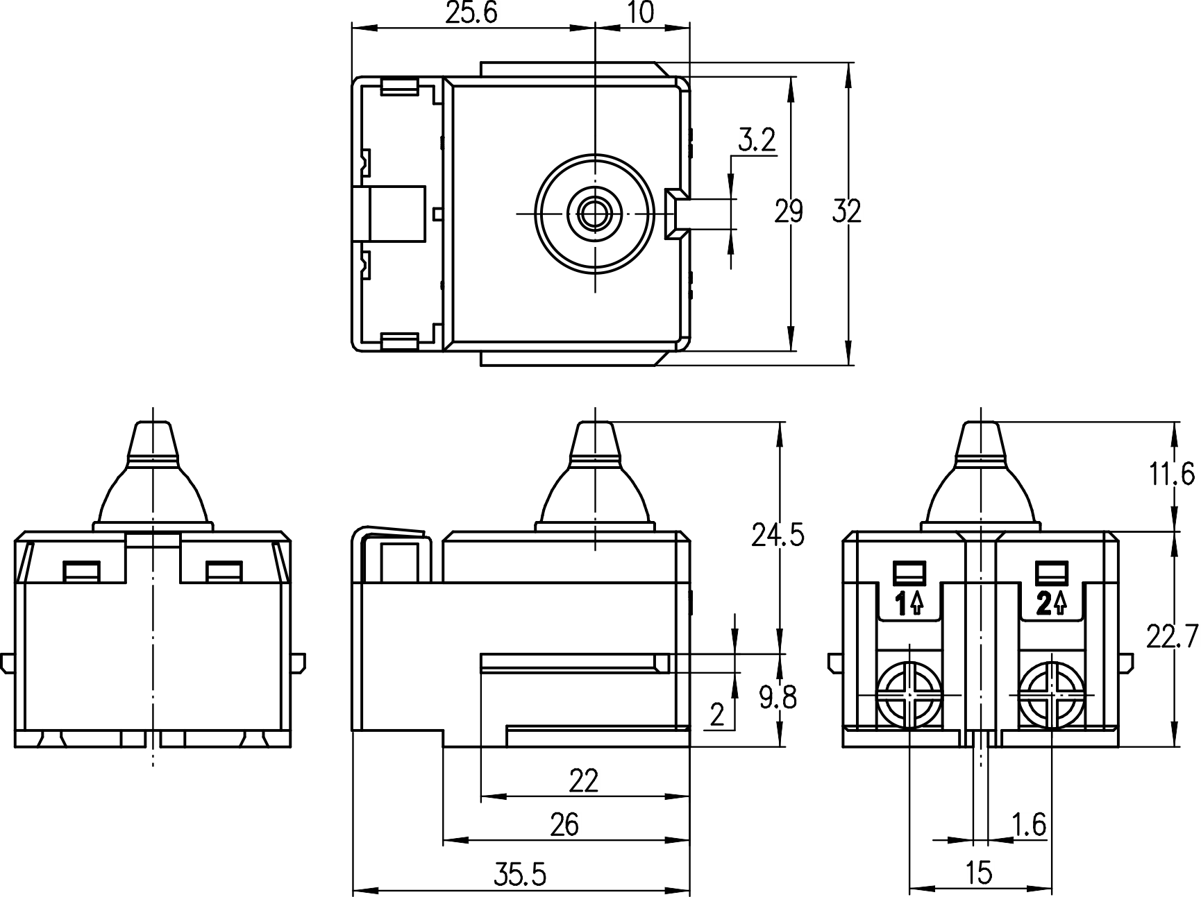FA2-5DN系列是一款專用型的按鈕開關,集成防塵功能內部為快速動作結構,應用于各類手持式電動工具,如:125和150角向磨光機、拋光機等。