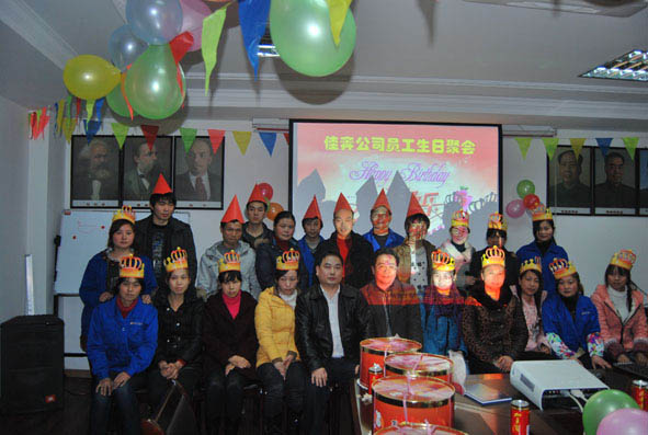 佳奔在公司為企業員工舉辦生日聚會,每人都領得一個大蛋糕,現場奶味十足