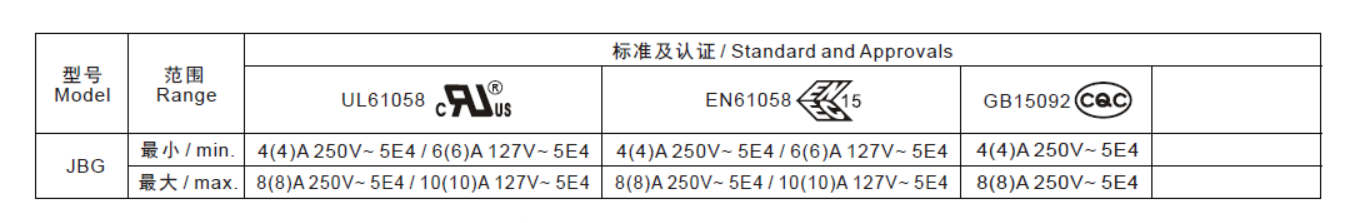 電氣參數和認證 Electric Rating and Certification