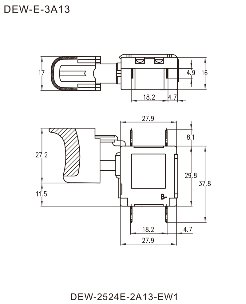 DEW series are one general type DC variable speed trigger switches, integrated dustproof and mechanical brake contact, without reversing box, commonly for used in DC portable power-tools and gardening tools such as: Cordless Rotary Hammers, Cordless Reciprocating Saws, Cordless Jig Saws, Cordless Angle Grinders, Cordless Grass Trimmers, Cordless Blowers, etc.