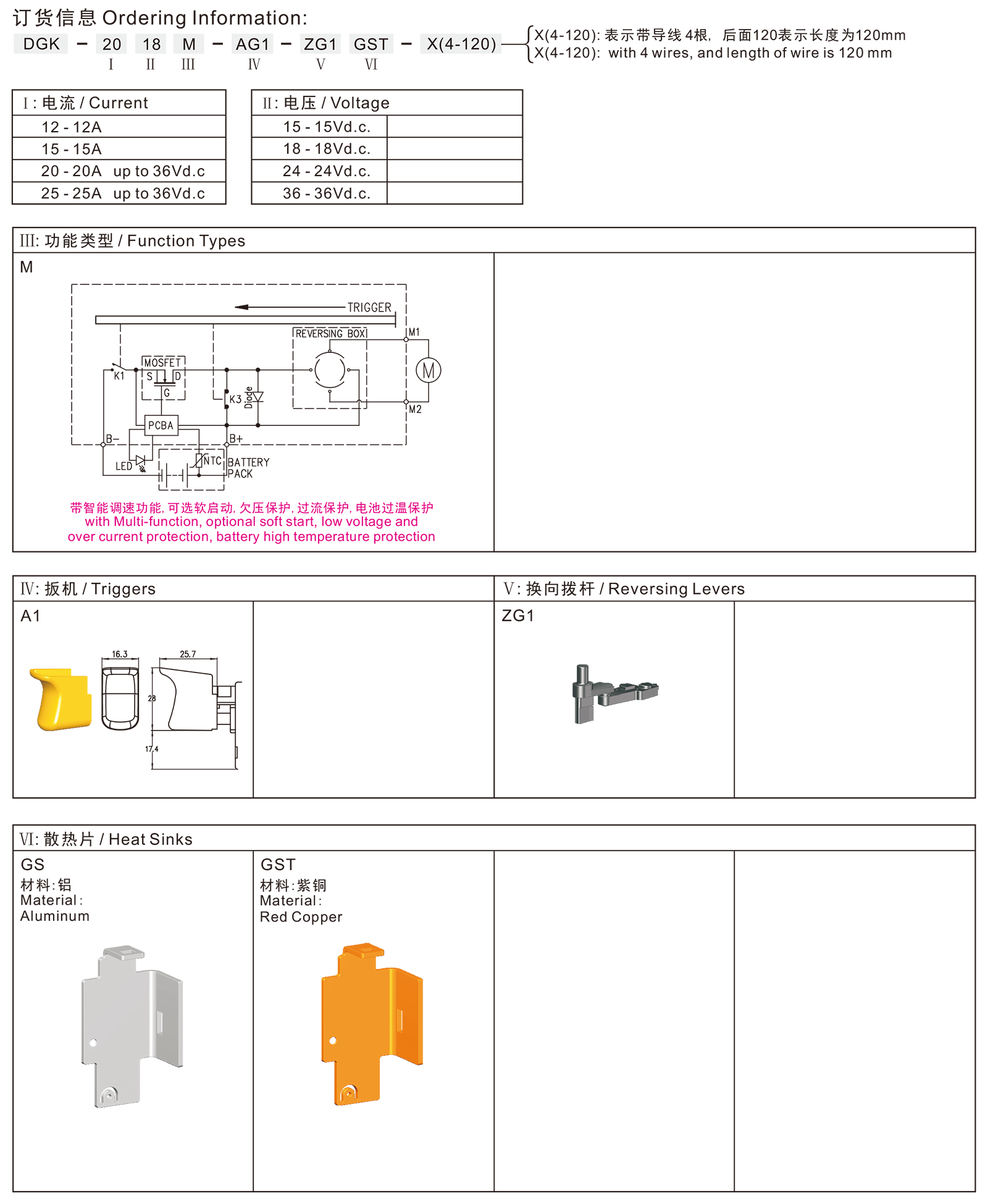 →智能調速功能,可帶軟啟動,欠壓保護,過流保護,電池過溫保護