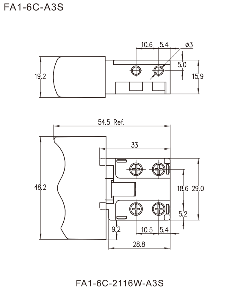→2×接線柱端子 Pillar terminals φ=2.9mm