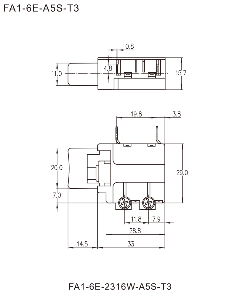 →插片端子 Plug-in terminals 2.8×0.8mm