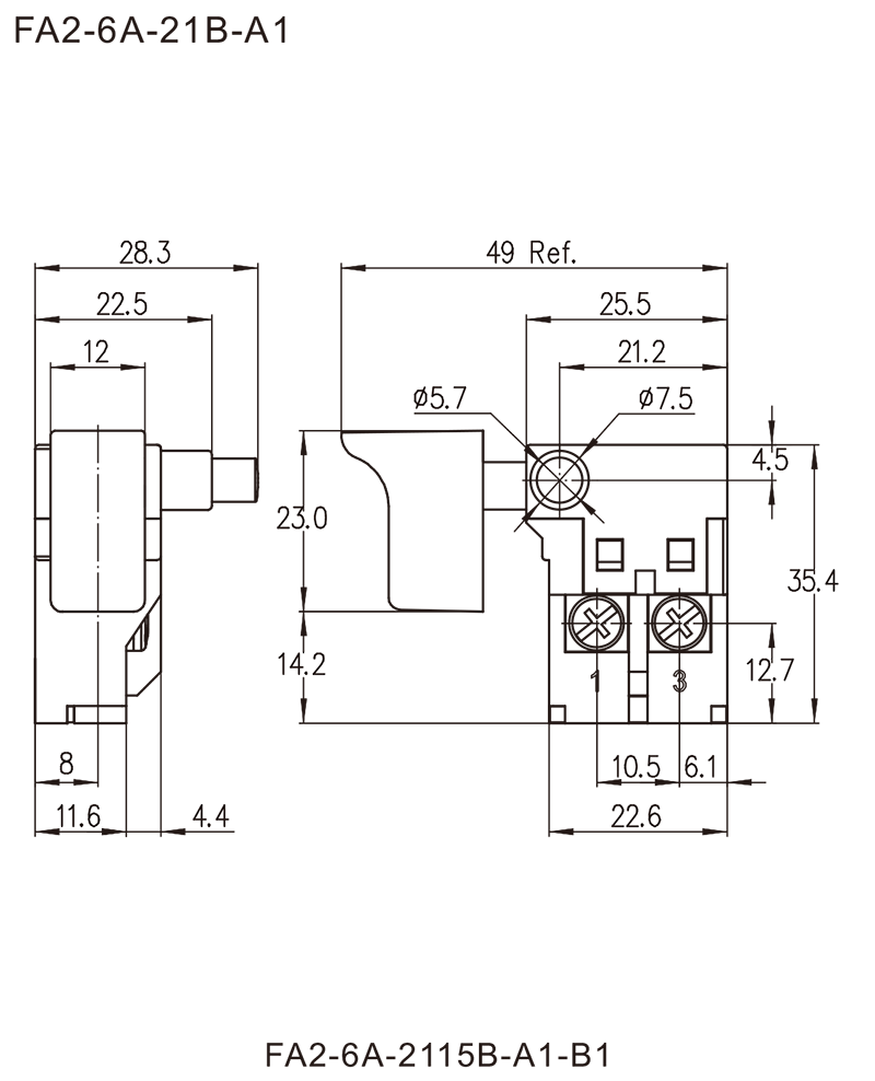 ◆FA2-6A series are one general type trigger switch, integrated dustproof, commonly for used in portable power tools such as Electric Drills, Marble Cutters, Circular Saws, Electric Routers, Belt Sanders, Electric Planers, etc.