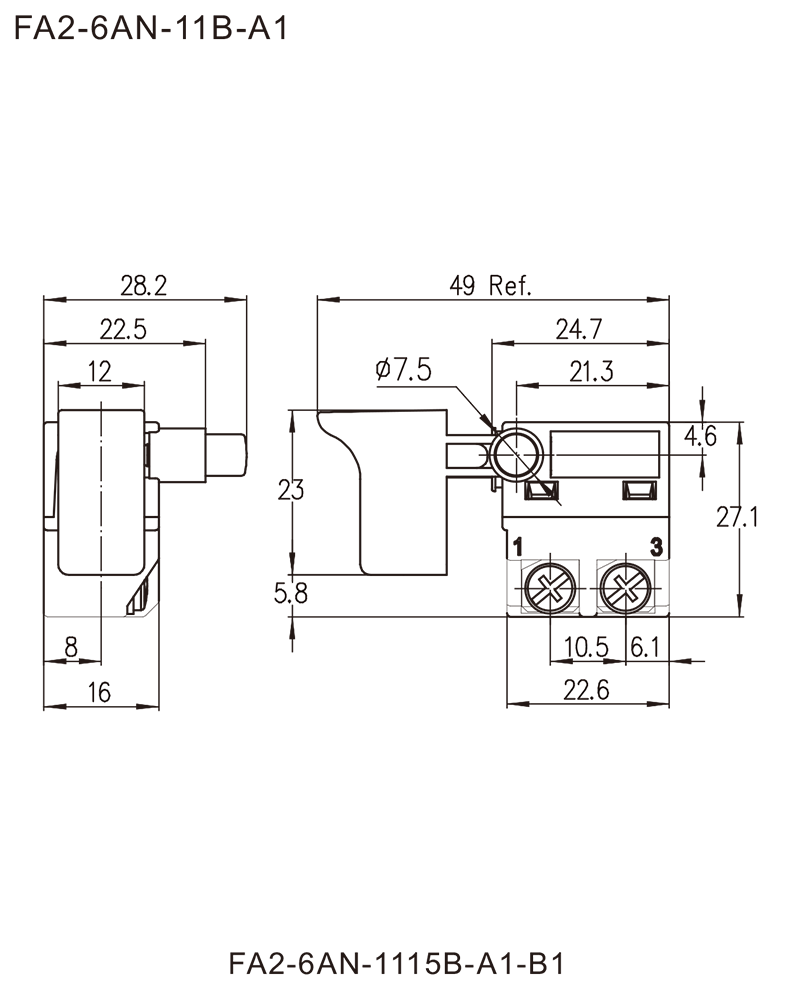 FA2-6AN series are one general type trigger switch, which is dustproof improved version of FA2-6A series, commonly for used in portable power tools and gerdening tools such as Electric Drills, Marble Cutters, Circular Saws, Electric Routers, Belt Sanders, Electric Planers, Electric Chain Saw, etc.