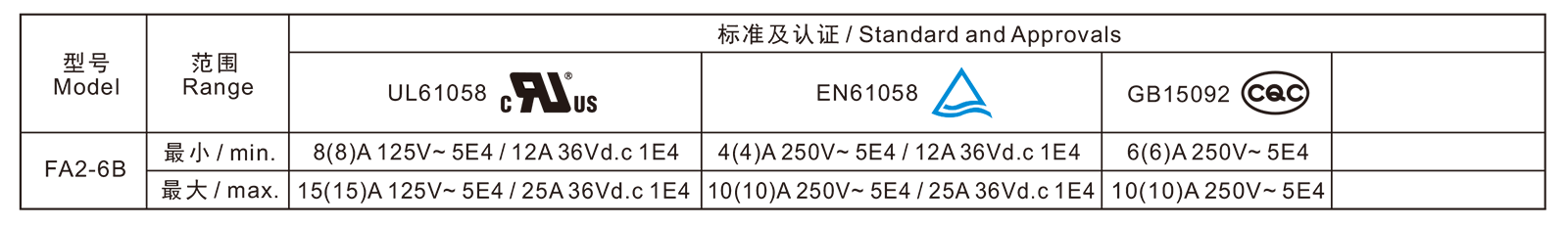 電氣參數和認證 Electric Rating and Certification