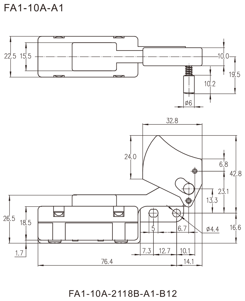 ◆FA1-10A series are general type high rated trigger switches,integrated dustproof, with snap-action structure, for used in high rated bench top or portable power-tools such as Cut-off Machines,Miter Saws, 150mm, 180mm and 230mm Large Angle Grinders, Polishers, Circular Saws, Rotary Hammers, Demolition Hammers, Electrics Chain Saws, etc.