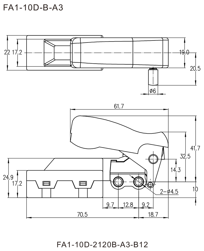 FA1-10B, FA1-10D series are general type high rated trigger switches, integrated dustproofwith snap-action structure, for used in high rated bench top, portable power-tools and gerdening tools such as Cut-off Machines, Miter Saws, 150mm, 180mm and 230mm Angle Grinders, Polishers, Circular Saws, Rotary Hammers, Demolition Hammers, Electric Chain Saws, etc.
