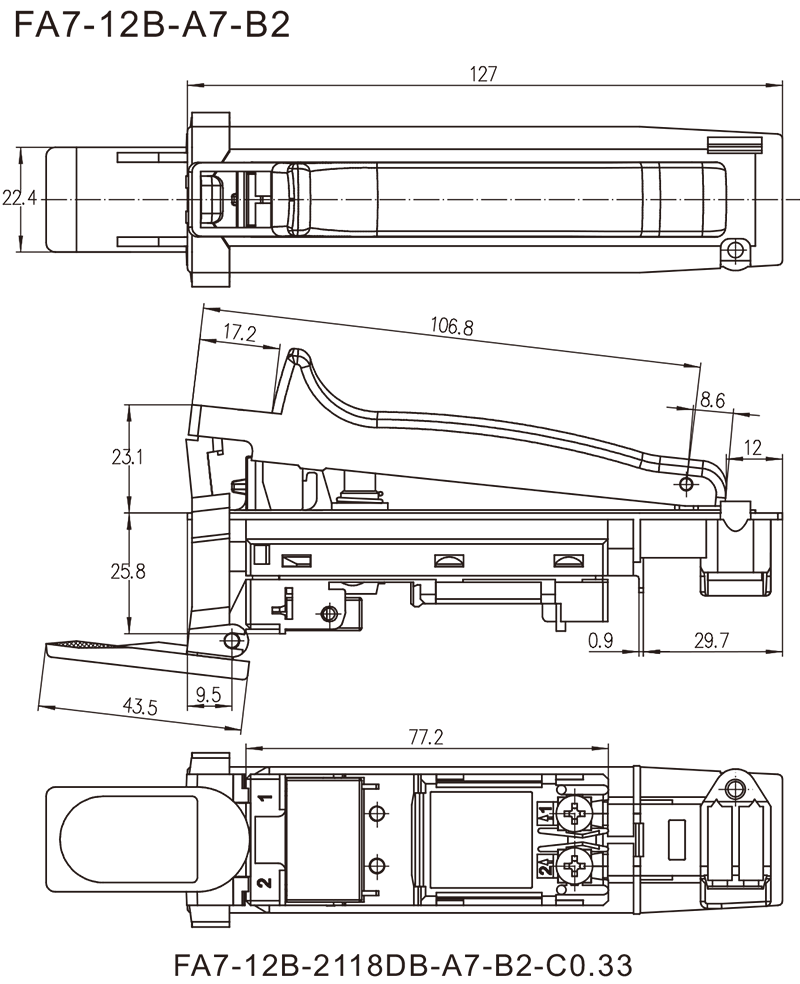 FA7-12B系列是一款專用型的大電流扳機開關,集成防塵功能內部為快速動作結構,適合大功率的電動工具,如:型材切割機、斜切鋸(介鋁機)、180和230大角磨、重型電錘、重型電鎬等。主體和扳機可按照客戶要求進行定制。