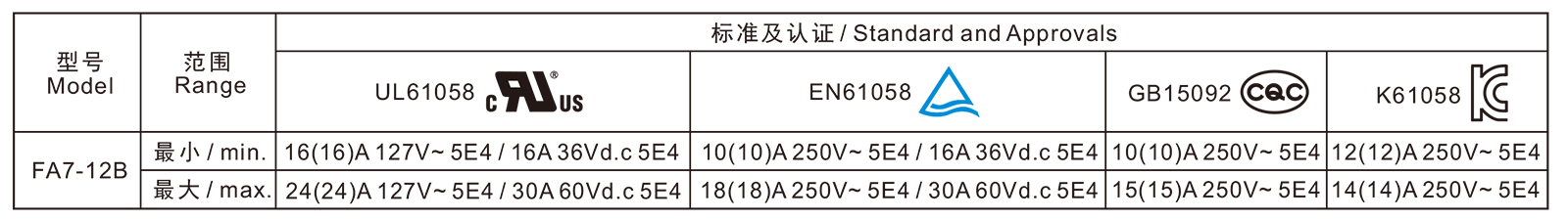 電氣參數(shù)和認證 Electric Rating and Certification