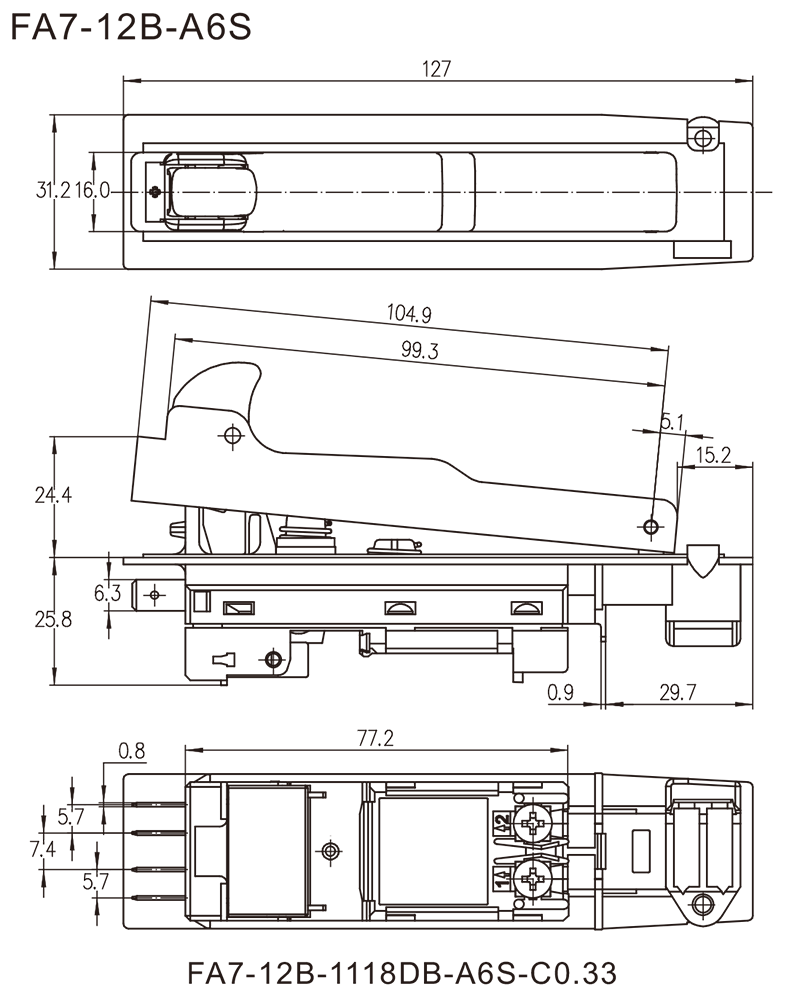 FA7-12B系列是一款專用型的大電流扳機開關,集成防塵功能,內部為快速動作結構,適合大功率的電動工具,如:型材切割機、斜切鋸(介鋁機)、180和230大角磨、重型電錘、重型電鎬等。主體和扳機可按照客戶要求進行定制。