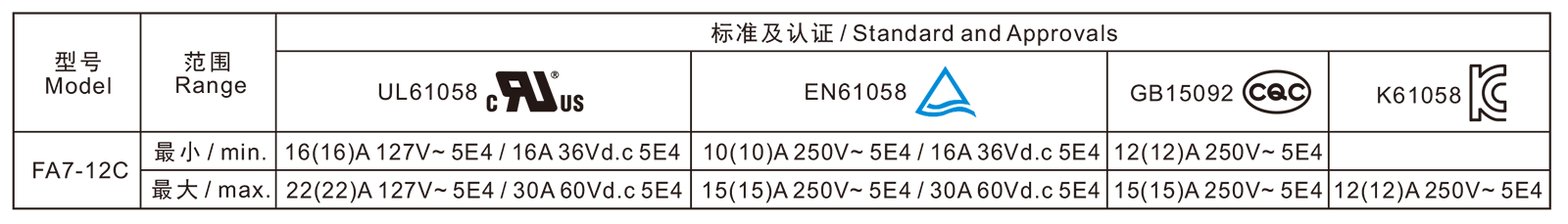 電氣參數和認證 Electric Rating and Certification