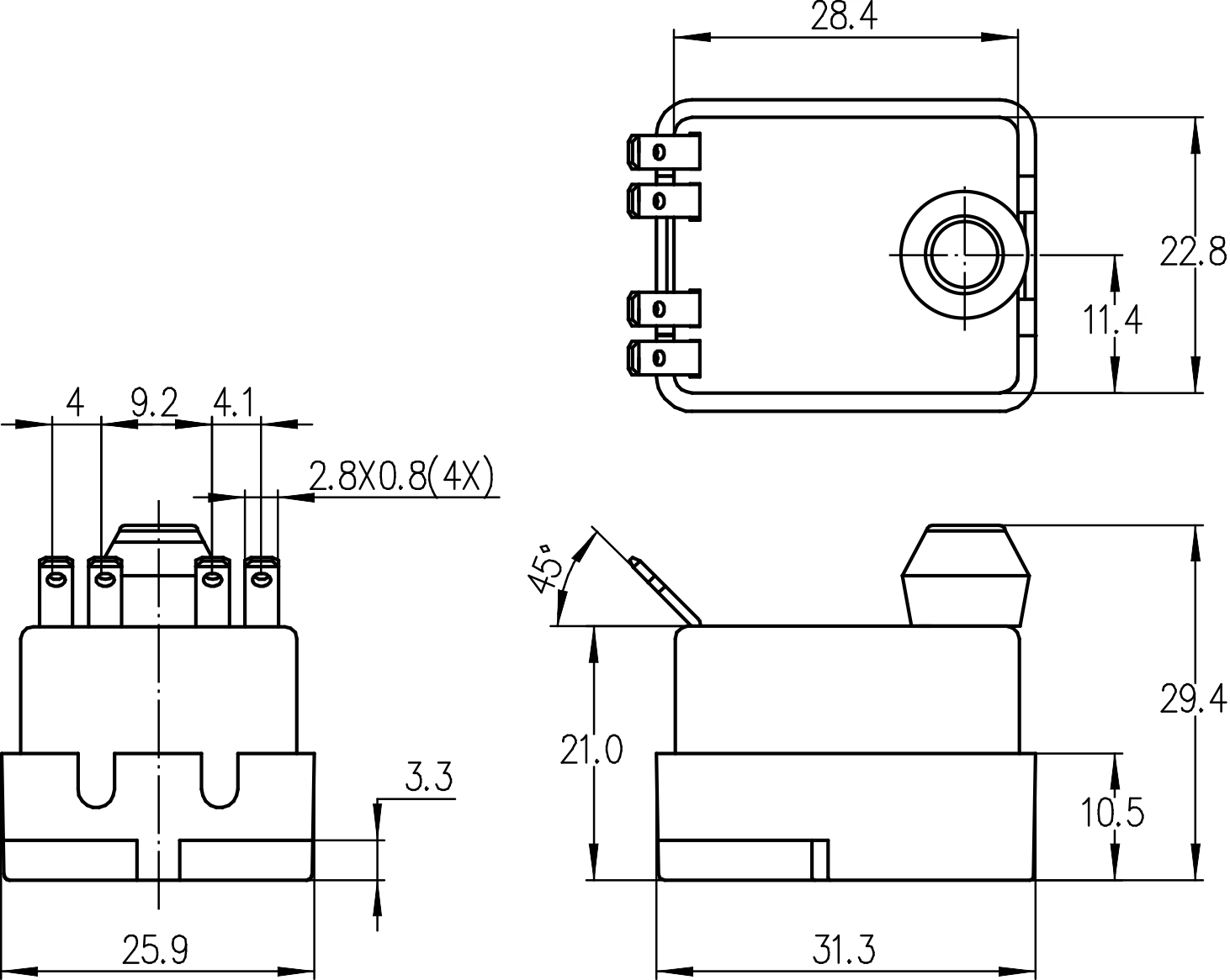 →2×接線柱端子 Pillar terminals φ=2.8mm