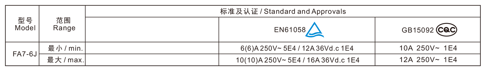電氣參數和認證 Electric Rating and Certification