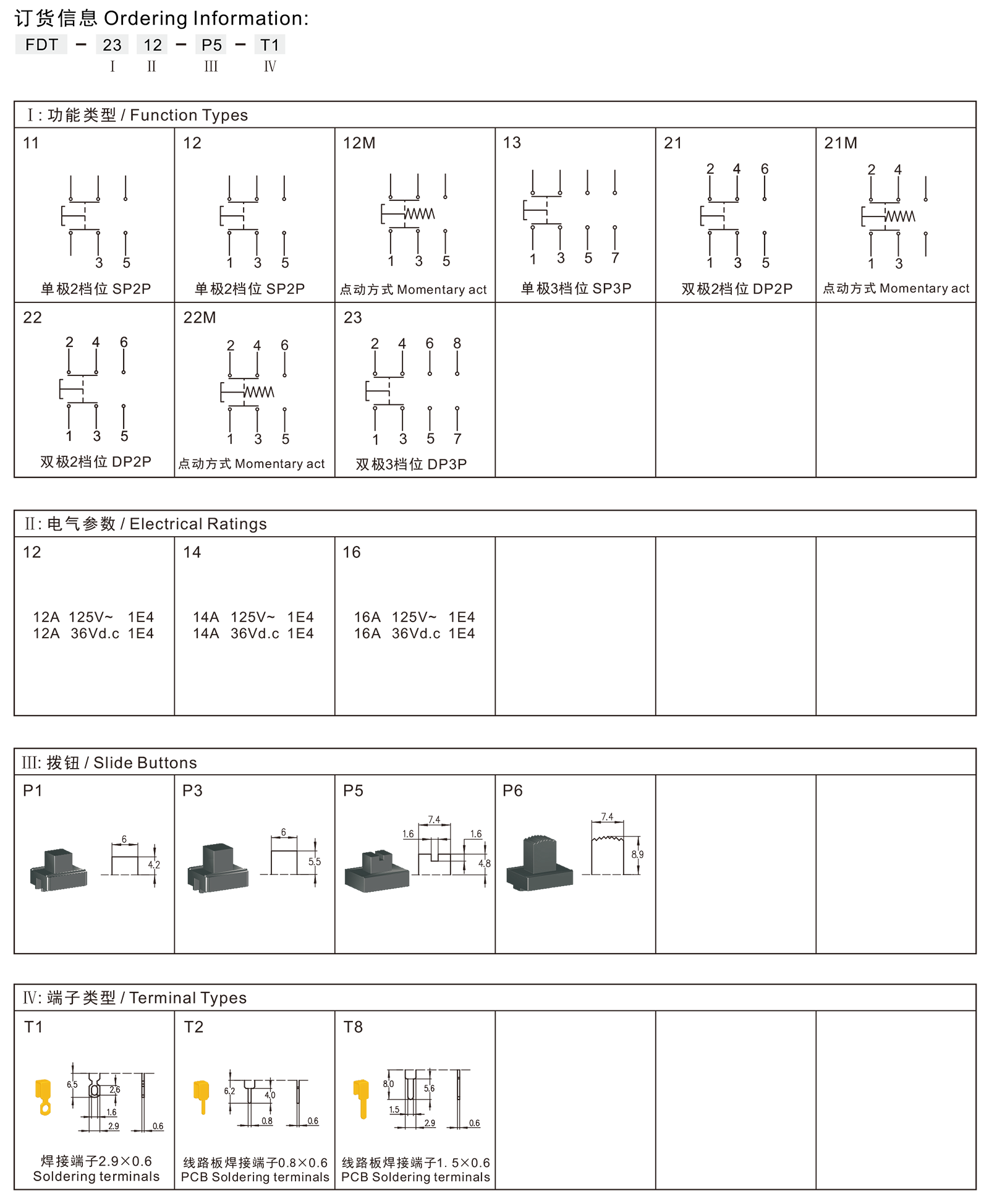 FDT series are general type slide switches, commonly for used in power-tools and small home appliances such as Heat Guns, Blowers, Hair Dryers, etc.