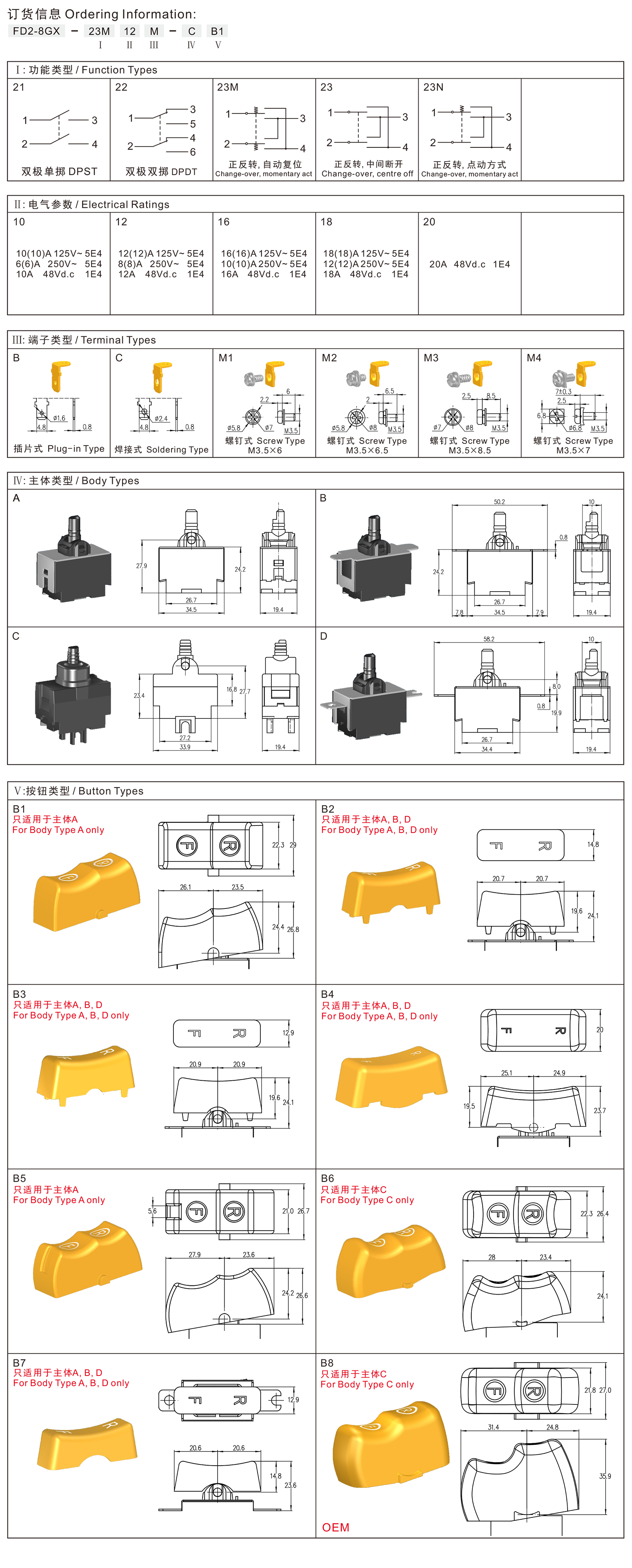 FD2-8GX series are special type Lever switches, also named Toggle switch, commonly for used in portable power-tools such as Electric Wrenches, Electric Mixers, Electric Winches, etc.