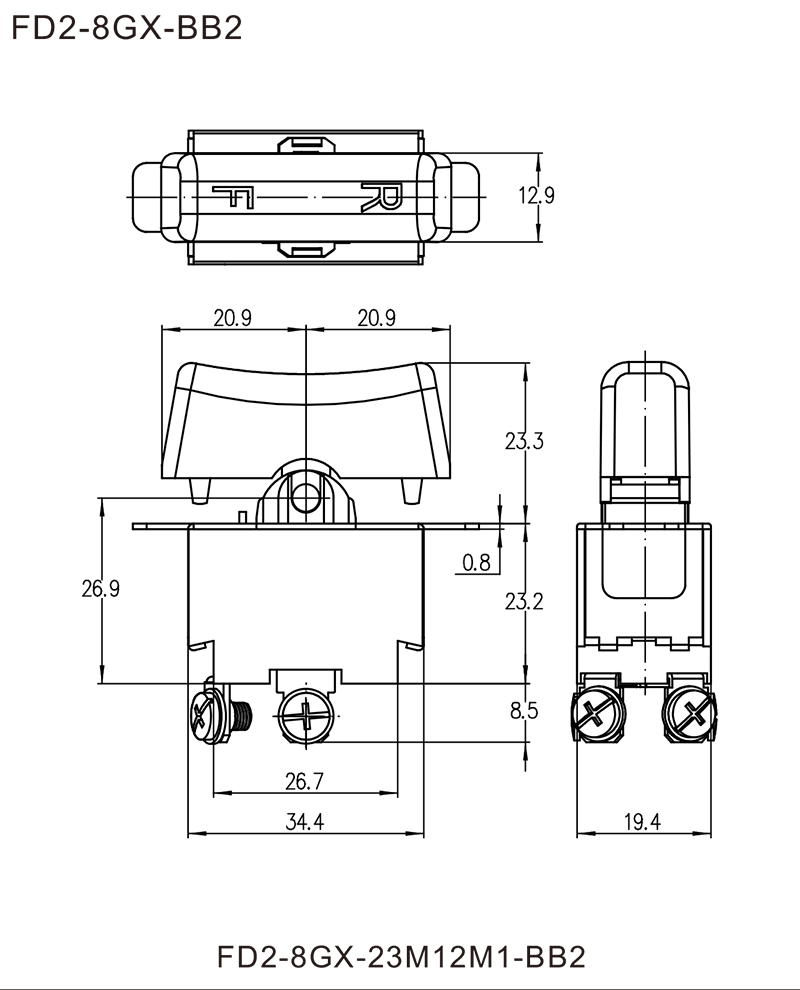 FD2-8GX series are special type Lever switches, also named Toggle switch, commonly for used in portable power-tools such as Electric Wrenches, Electric Mixers, Electric Winches, etc.