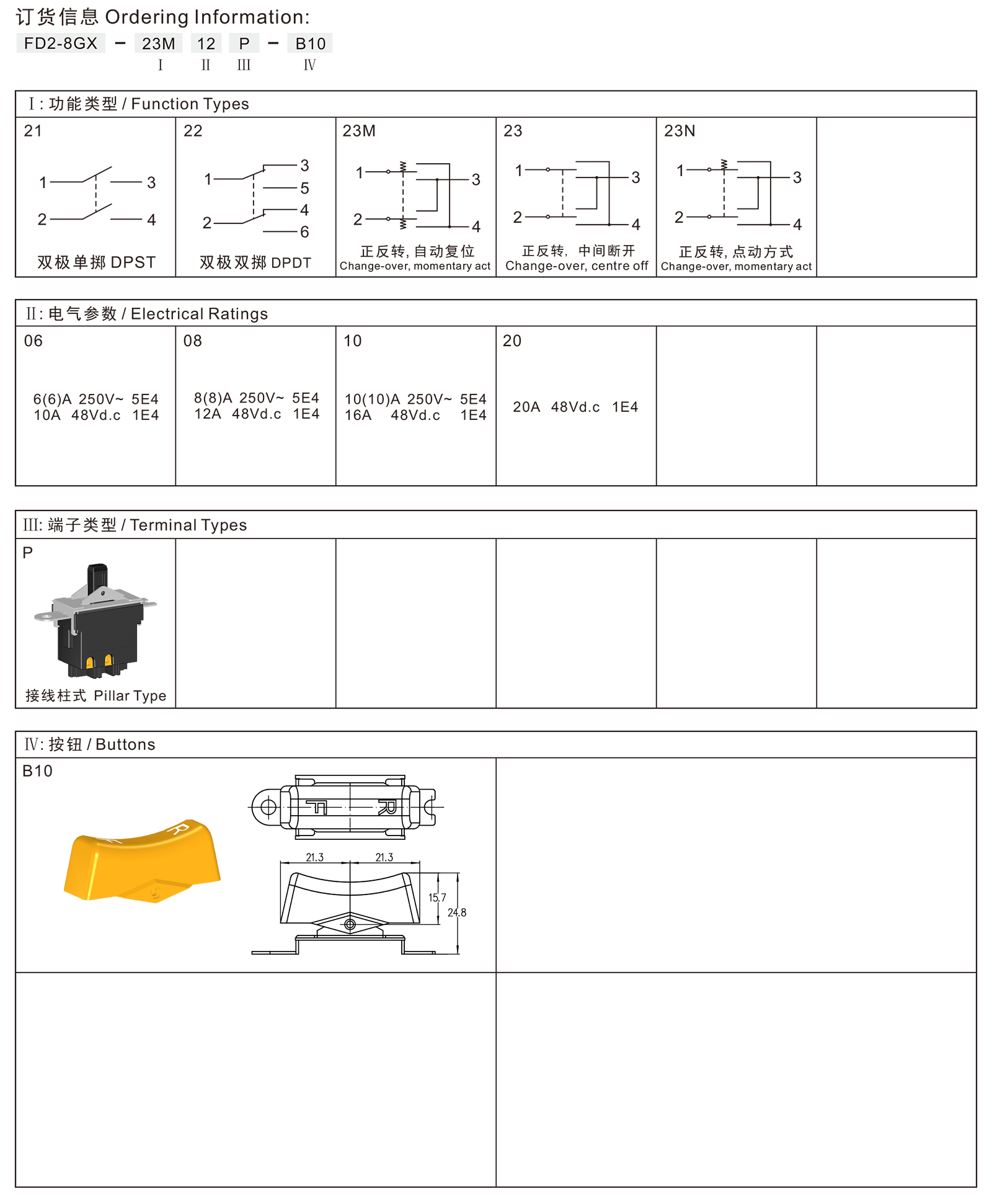 ◆FD2-8GX系列是一款專用型的倒扳開關,也叫搖桿開關或撥動開關,應用于各類手持式電動工具,如:電動沖擊扳手、電動攪拌器、電動葫蘆等。