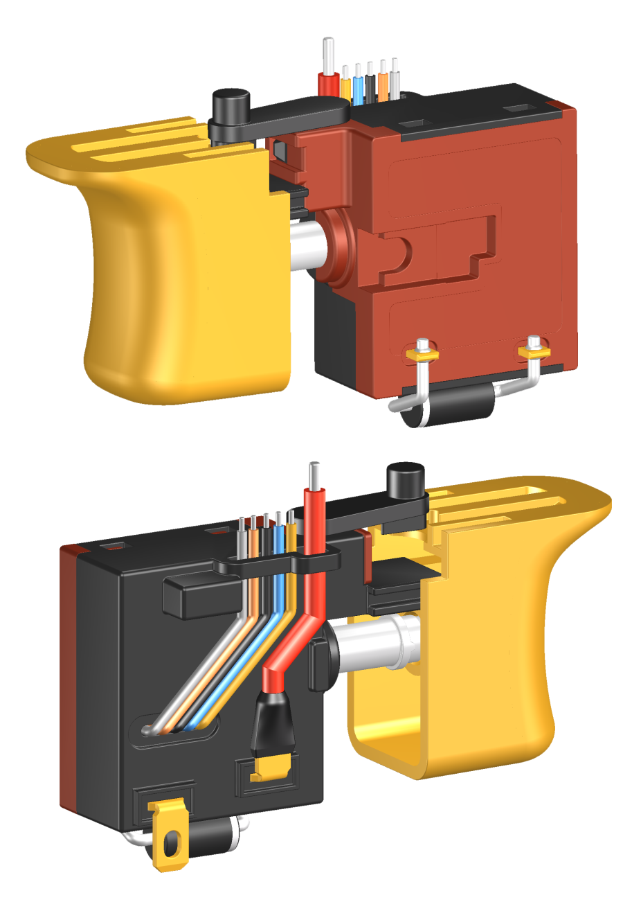 我司主要產品:微動開關、蹺板開關、按鈕開關、扳機開關、調速開關和電位器開關等各類交、直流器具開關和各類交、直流線路板模塊,應用于交、直流電動工具、電動園林工具、清潔器具、家用電器和小型機床等行業。 Our company main products: micro switch, rocker switch, push button switch, trigger switch, speed switch and potentiometer switch and other kinds of a